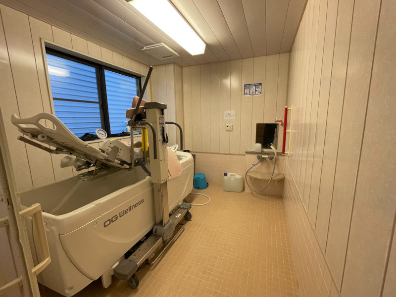 身体状況によって自宅の浴室での入浴が困難な場合、 アパート内に設置してある特殊浴槽で対応可能となっております。
